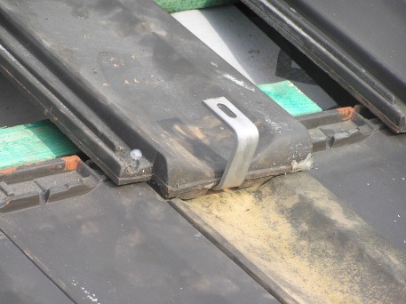 und die Eindeckung wieder drunter und drauf... leichter gesagt als getan; denn für die Haken müssen Aussparungen in die Pfannen ober- und unterhalb der Haken.